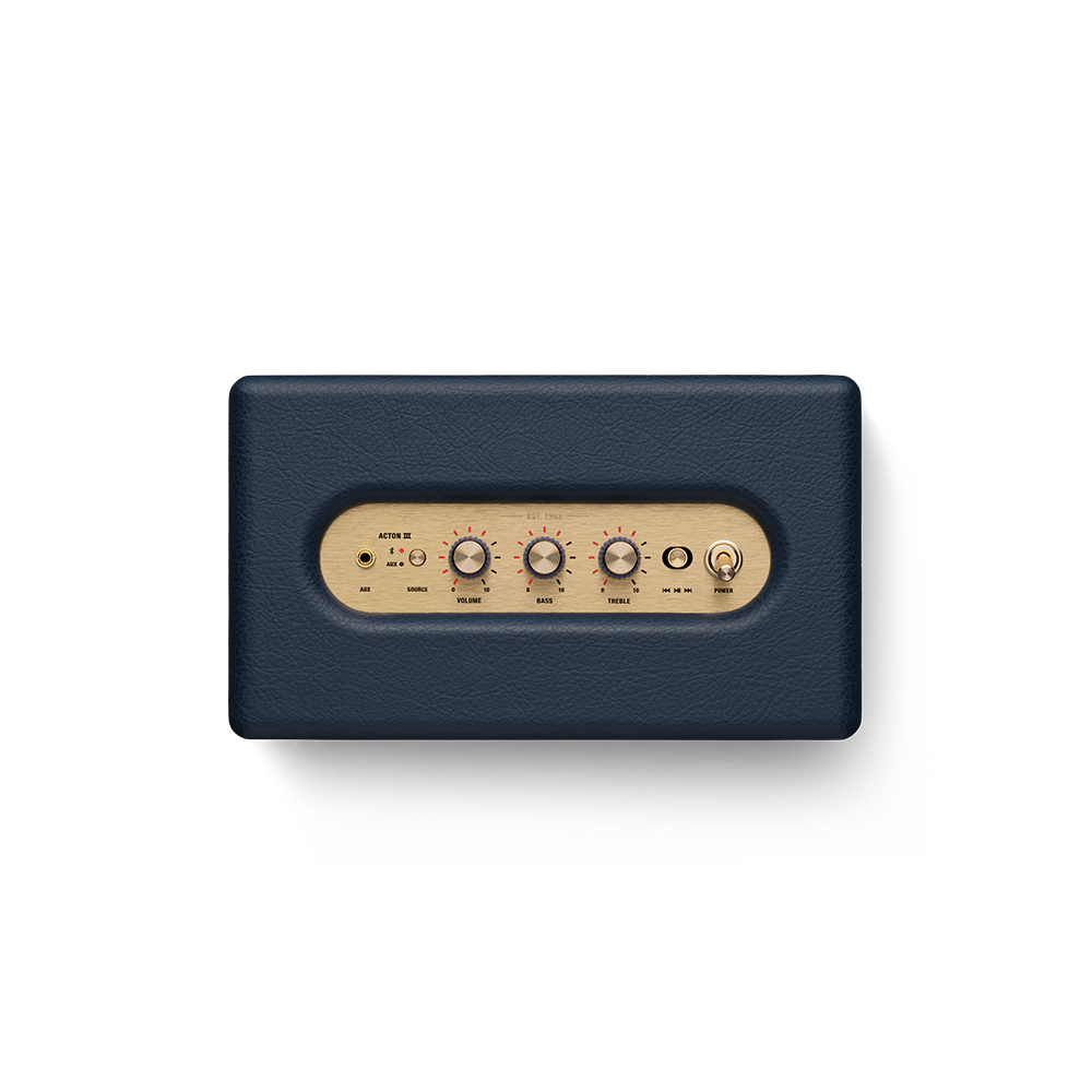 Acton IIIはMarshallの特徴的なロックンロールホームスピーカーのコンセプトを踏襲しつつ、ロゴプレート、真鍮のコントロールノブなどブランドアイデンティティを洗練されたデザインで表現しています。スピーカーの前面を飾る真鍮のパネルはより細く、流線型になり、フレットは全体的な仕上げに合わせてカラーコーディネートされています。マルチディレクショナルコントロールノブとクラシックなパワースイッチはスピーカー本体を演出し、マーシャルアンプのレガシーを彷彿させます。