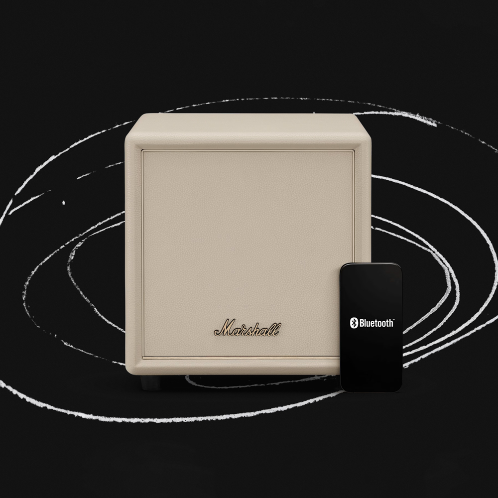 同シリーズのデザインで仕上げられた 「Heston Sub 200」 は、インテリアに自然に溶け込みながら圧倒的な重低音を響かせるサブウーファーです。Bluetooth LE Audio によるワイヤレス接続で自由に設置場所を選べ、部屋のどこに置いても体に響く低音を楽しめます。クラシックなデザインと力強いパフォーマンスを備えた「Heston Sub 200」は、自宅で映画館さながらの没入体験を実現する理想的なパートナーです。また、Marshall アプリを使用してプリセットやサウンドモードを自在にカスタマイズ可能です。「Heston 60」と「Heston Sub 200」はアプリ上でシームレスに連携し、スムーズにペアリングや調整が行えます。さらに、両モデルとも修理対応が可能で、交換用のパーツも用意されており、長期的に安心して使い続けられる設計になっています。