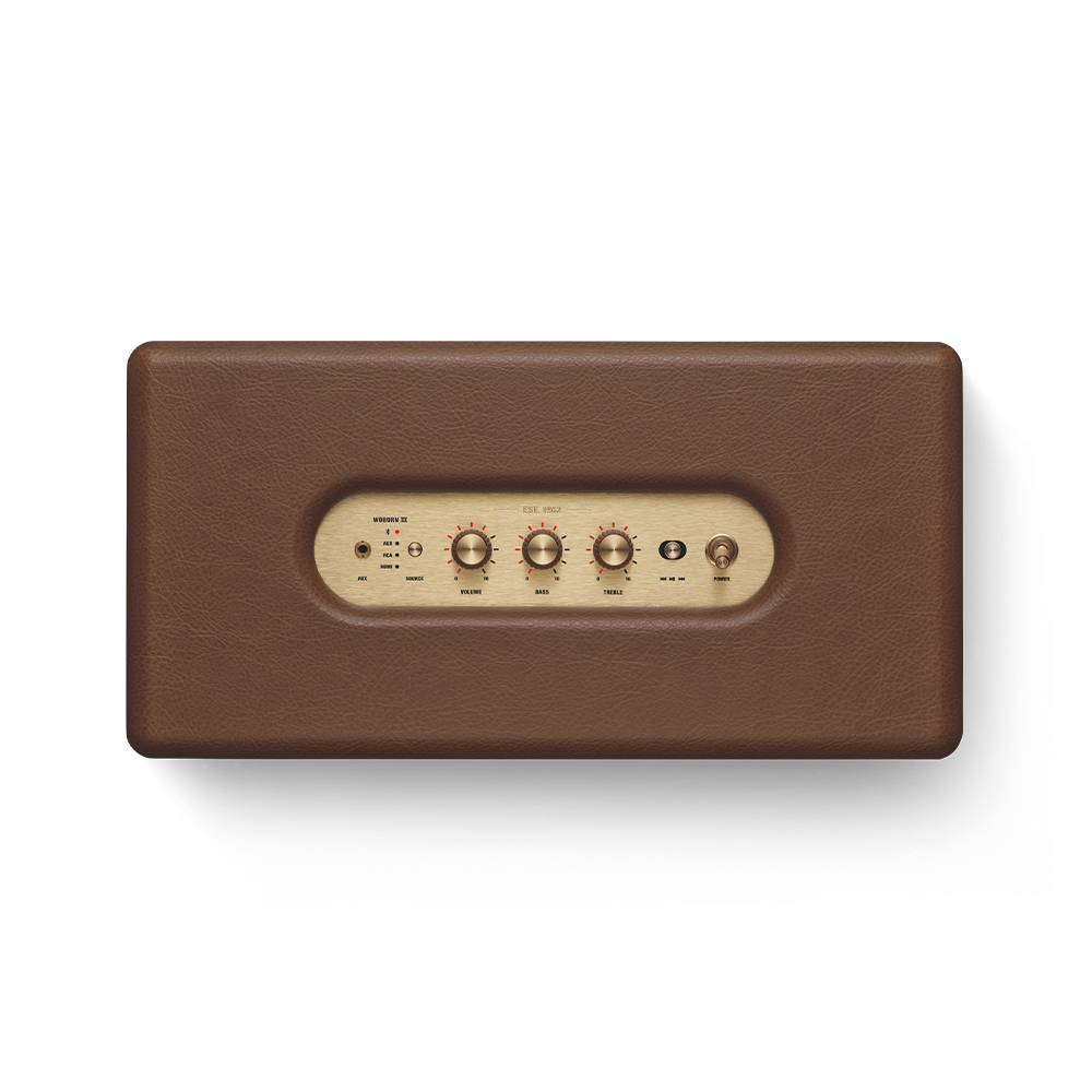 特徴的なロックンロールホームスピーカーのコンセプトを踏襲しつつ、ロゴプレート、真鍮のコントロールノブなどブランドアイデンティティを洗練されたデザインで表現しています。スピーカーの前面を飾る真鍮のパネルはより細く、流線型になり、フレットは全体的な仕上げに合わせてカラーコーディネートされています。マルチディレクショナルコントロールノブとクラシックなパワースイッチはスピーカー本体を演出し、マーシャルアンプのレガシーを彷彿させます。